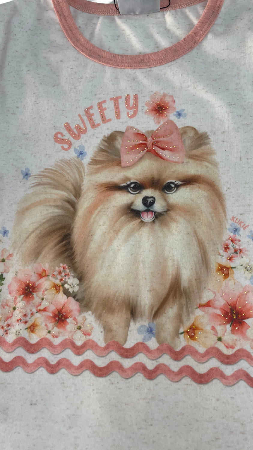 O conjunto inverno Kukiê é composto por camisa toda estampada de cahorro e strass no escrito, acompanha um short colorido com bolsos, elástico na cintura e laço para amarração. Quando você pensa no look ideal para deixar sua princesa estilosa, com certeza é esse que vem na mente né?!