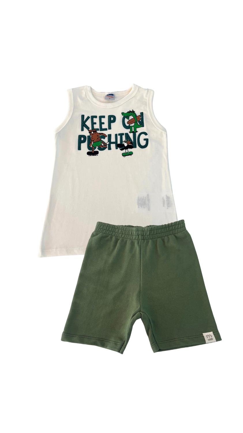 O conjunto masculino Marlan. A regata em meia malha penteada vem com estampa interativoa em alto relevo, acompanha um short em moletinho com elástico na cintura. Esse conjunto vai ser a aposta garantida para um passeio cheio de estilo e diversão nos dias de calor! Seu Principe vai arrasar!