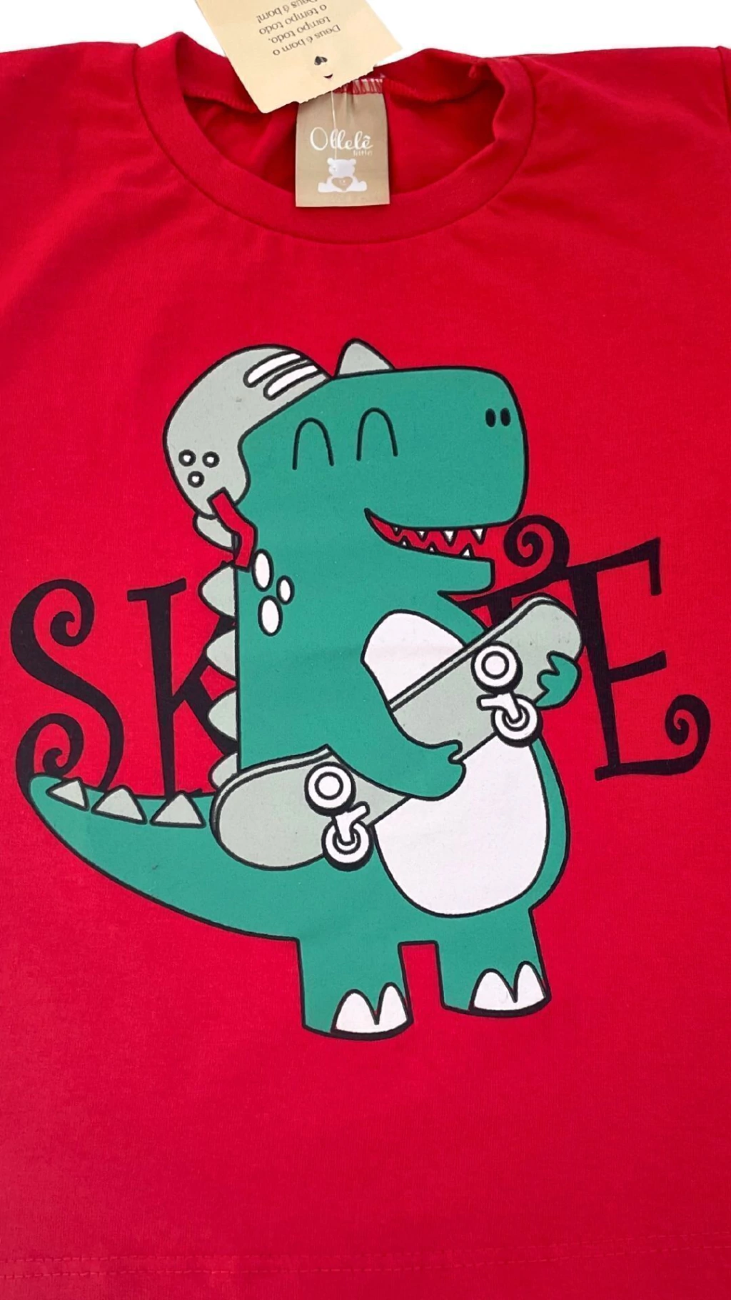 O conjunto masculino Ollelê. camisa super fofa com estampa de dinossauro e lettring, acompanha um short em moletinho com elástico na cintura, proporcionando conforto e liberdade para brincar à vontade! Perfeito para os dias de calor, é a escolha certa para um passeio cheio de estilo e diversão.