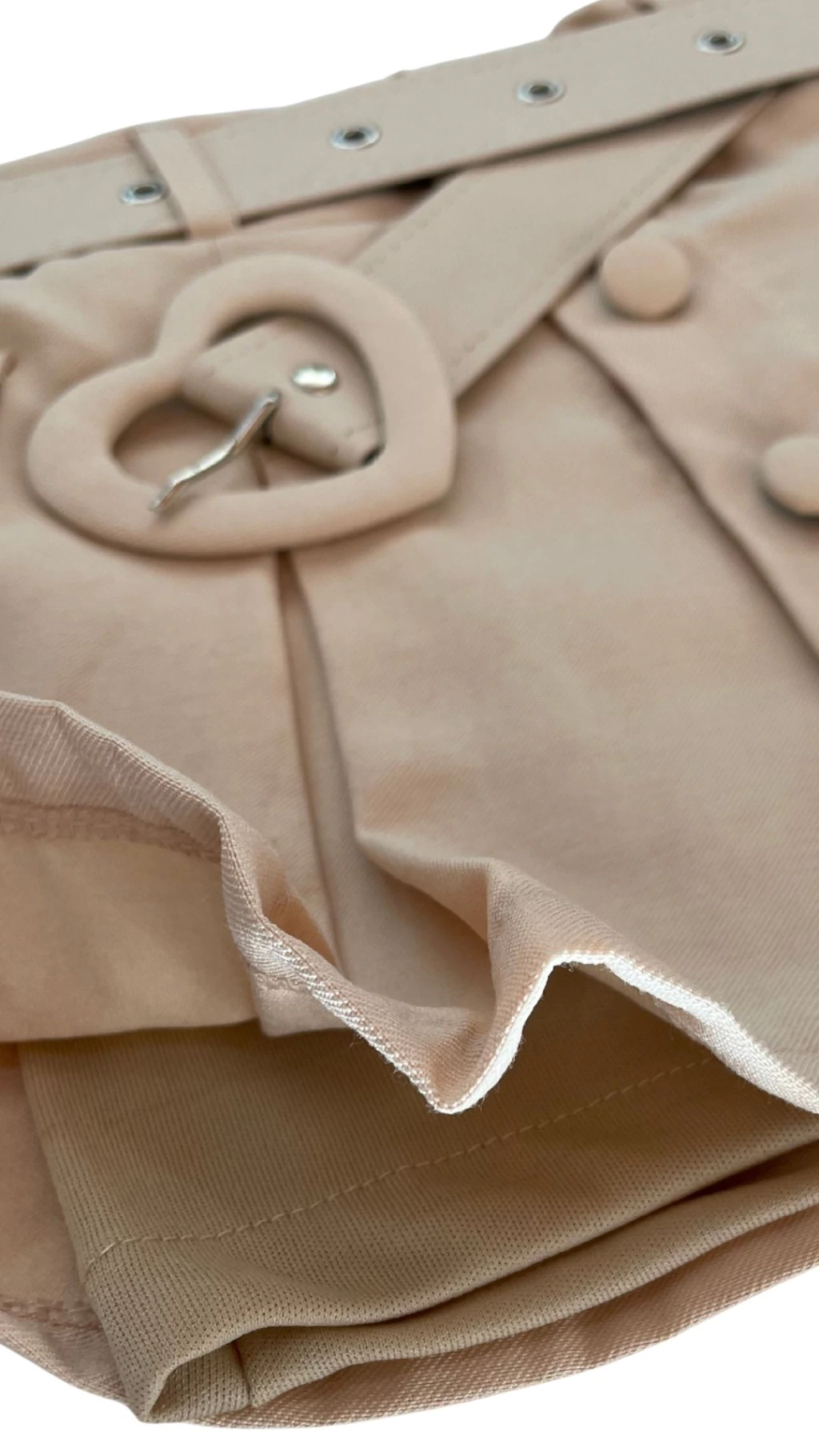Conjunto confeccionado em tecido premium, com toque suave e caimento leve, perfeito para unir conforto e estilo! O top com babadinhos nas alças traz um charme delicado, enquanto o short-saia com pregas e cinto do mesmo tecido, com fivela em formato de coração, garante um visual moderno, elegante e super confortável.