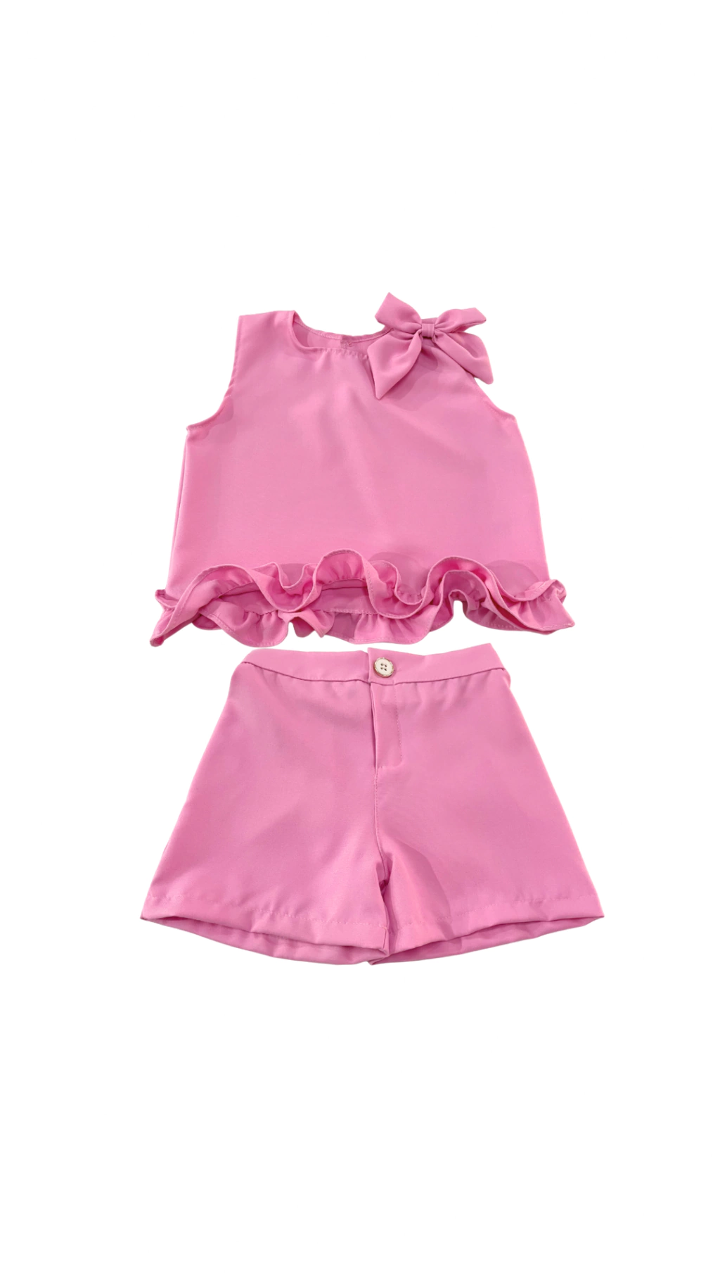 Conjunto é confeccionado em tecido leve e confortável, com estampa floral vibrante que transmite toda a alegria da infância. Possui modelagem soltinha com alcinhas delicadas e babado na barra, garantindo charme e liberdade nos movimentos. O short com amarração completa o look com um toque moderno e descontraído. Um conjunto encantador e cheio de personalidade, perfeito para deixar sua princesa ainda mais linda em qualquer ocasião!