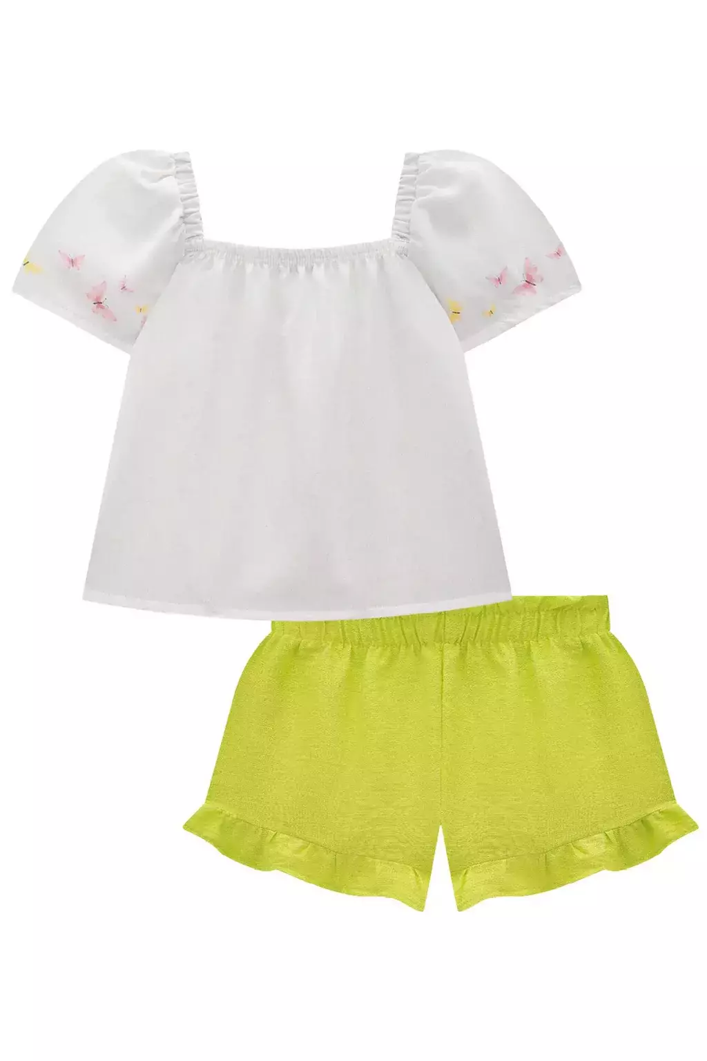 Conjunto infantil Infanti, Uma bata com estampa de ursinhos com detalhes de brilhinhos e laço na gola, shortinho em viscose turim com babadinho. um look maravilhoso pra sua princesa arrasar . Quando você pensa no look ideal para a sua Princesa, com certeza é esse que vem na mente né?!