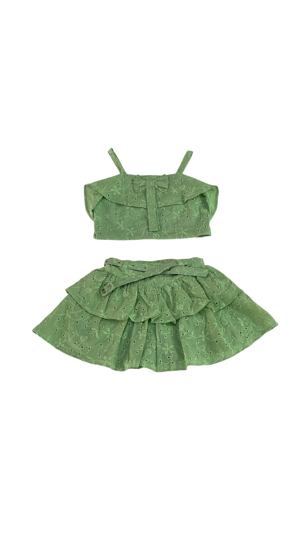 Conjunto confeccionado em tecido laise bordado premium, com toque suave e caimento leve, perfeito para unir conforto e estilo! O top com babadinhos nas alças e laço frontal traz um charme delicado e romântico, enquanto o short-saia com pregas e cinto do mesmo tecido garante um visual moderno, elegante e super confortável. Um look encantador e sofisticado para deixar sua princesa ainda mais linda em qualquer ocasião!