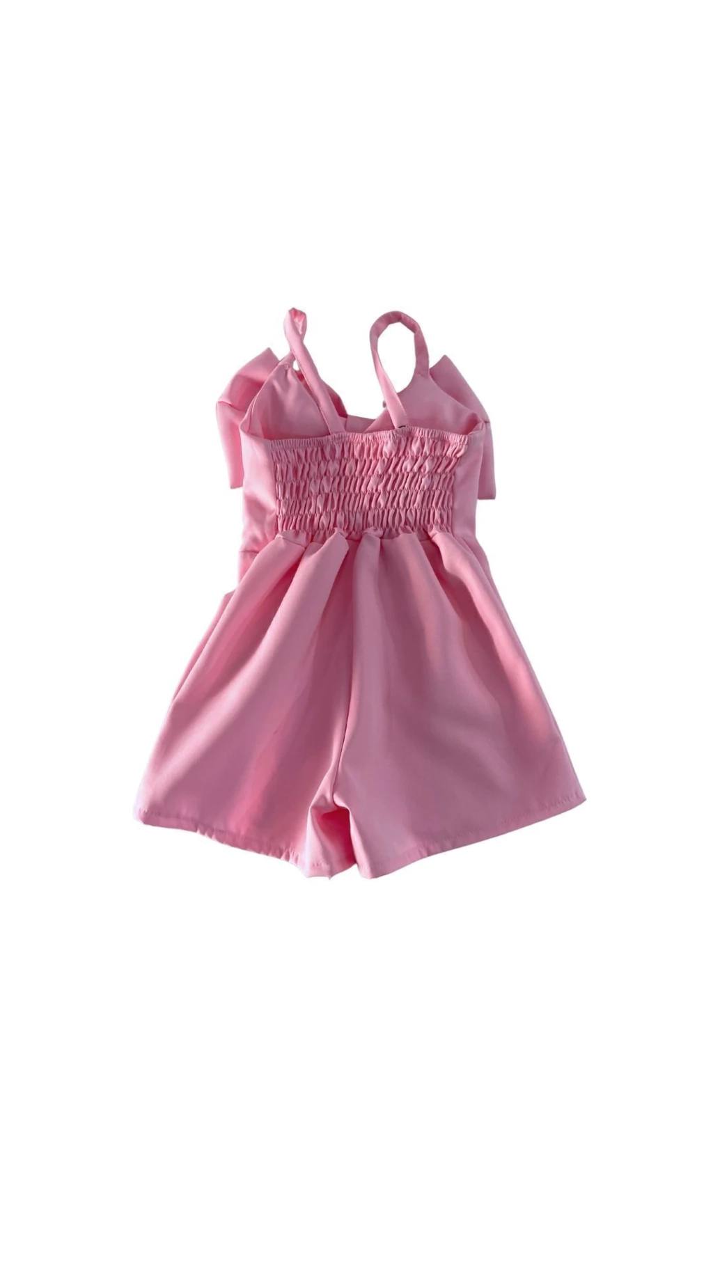 Macacão confeccionado em tecido de crepe leve e sofisticado, que proporciona toque suave, conforto e caimento impecável. O modelo apresenta laço frontal delicado, trazendo um toque de charme e elegância à peça. As alcinhas finas completam o visual com graciosidade e frescor, perfeito para dias especiais. Um look encantador e moderno, ideal para deixar sua princesa linda, confortável e cheia de estilo em qualquer ocasião!