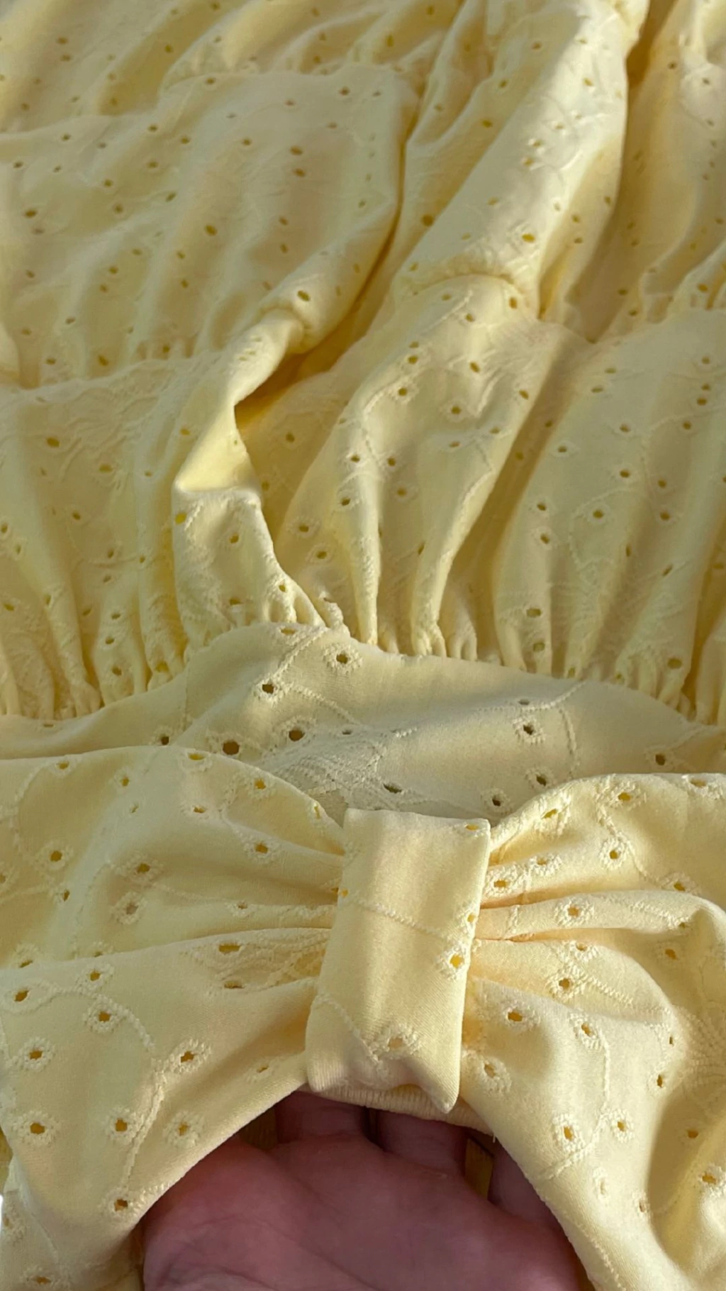 Vestido confeccionado em laise bordado premium, com forro interno que garante conforto e acabamento impecável. Seu modelo conta com camadas amplas e fluidas, proporcionando movimento e leveza ao look. O laço frontal adiciona um toque de delicadeza e charme, tornando a peça ainda mais encantadora! Um vestido perfeito para deixar sua princesa linda, elegante e confortável em qualquer ocasião especial!