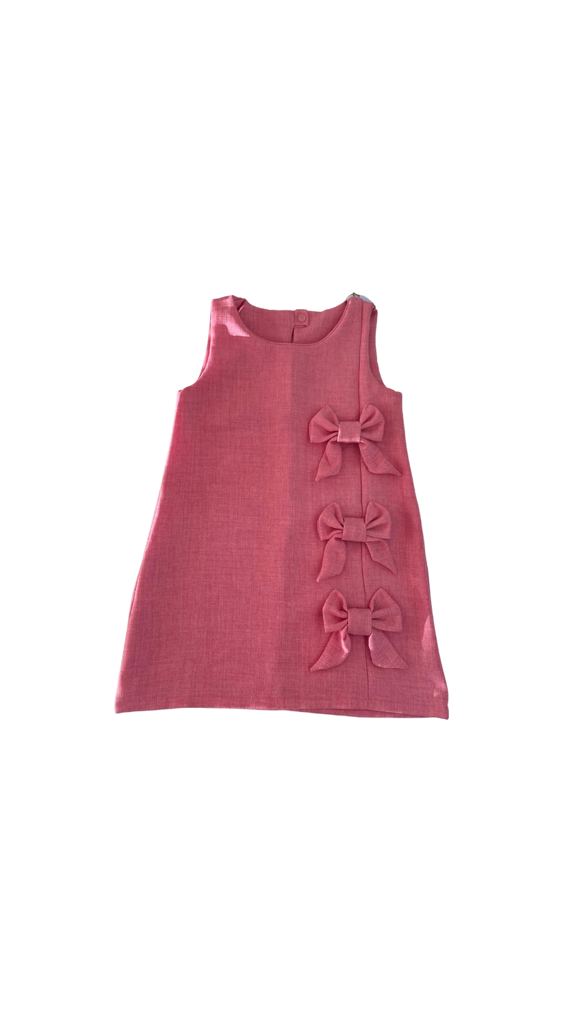 Vestido em linho, com um design sofisticado e delicado. Possui modelagem reta e moderna. O charme especial fica por conta dos três laços aplicados na lateral, que trazem um toque romântico e elegante à peça. O tecido em linho proporciona conforto, leveza e um caimento impecável. Um look clássico e ao mesmo tempo contemporâneo, perfeito para deixar sua princesa ainda mais charmosa em qualquer ocasião!